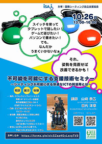 座長の理学療法士直井寿徳さんのイントロダクションを受けて、山崎が「国際標準のシーティングの可能性 ~シーティングで変わる障害児の生活~」と題して講演した後、子供発達支援センターのびろセンター長の辻清張さんが障害児・医療的ケア児のプール、乗馬、スキーなどの活動について講演。その後ディスカッションをして会場からの質問に答えました。